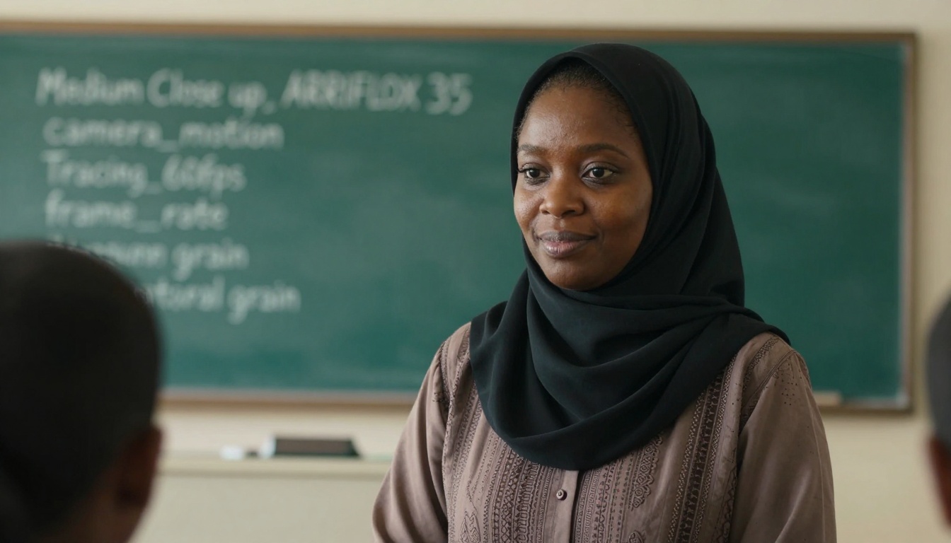 A warm, intimate scene of a Muslimah teacher guiding her students in a classroom setting.