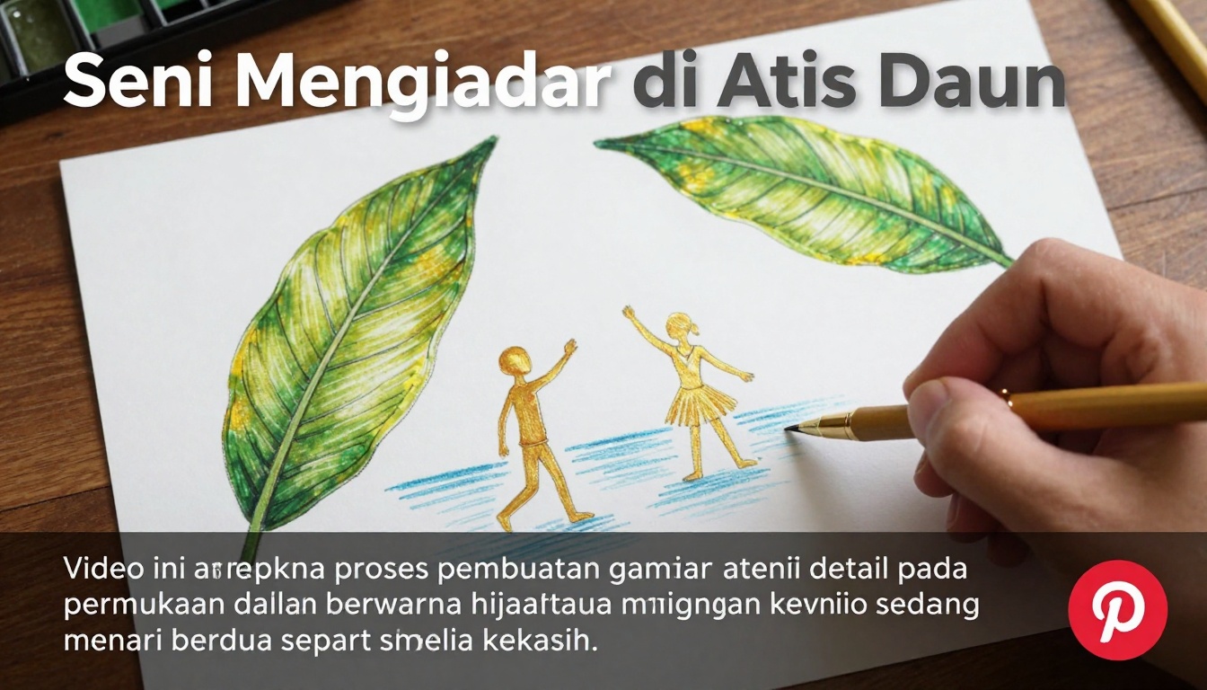titleSeni Menggambar di Atas Daunmedia typeVideoplatformPinterestcontent summaryVideo ini menampilkan proses pembuatan gambar atau seni detail pada permukaan daun berwarna hijau tua menggunakan pena berwarna emas atau perak. Di awal video, terlihat elemen air yang membentuk sosok manusia kecil sedang menari berdua seperti sepasang kekasih.visual elements[object Object],[object Object],[object Object],[object Object]actions[object Object],[object Object]lightingPencahayaan yang baik, menyoroti daun dan pena, membuat kilauan pena terlihat.purposeMenunjukkan keindahan seni mikro atau seni yang memanfaatkan bahan alami sebagai kanvas, dengan sentuhan magis di awal.mood toneMenarik, presisi, kreatif, artistik, magis.