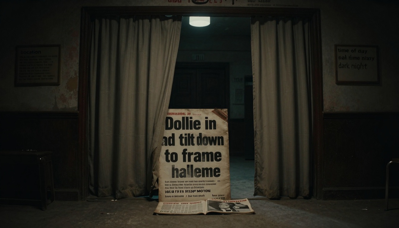 A clay-style stop motion video in a dark, abandoned theater with a dramatic tone, focusing on a magazine headline.