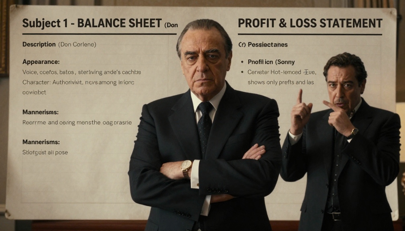 Dramatic portrayal of financial figures in a dimly lit room, each with distinct personalities and styles.