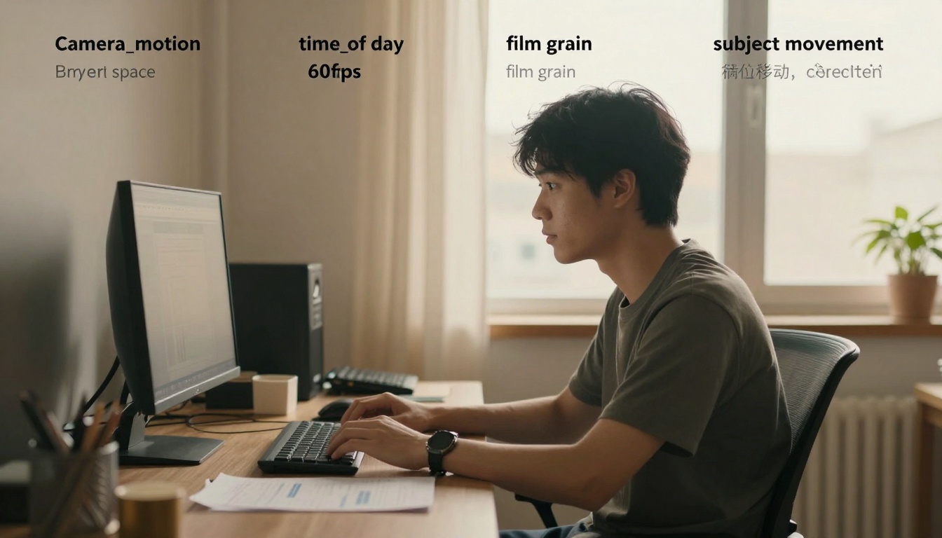 An over-the-shoulder view in a cozy office, capturing a calm morning atmosphere with natural light.