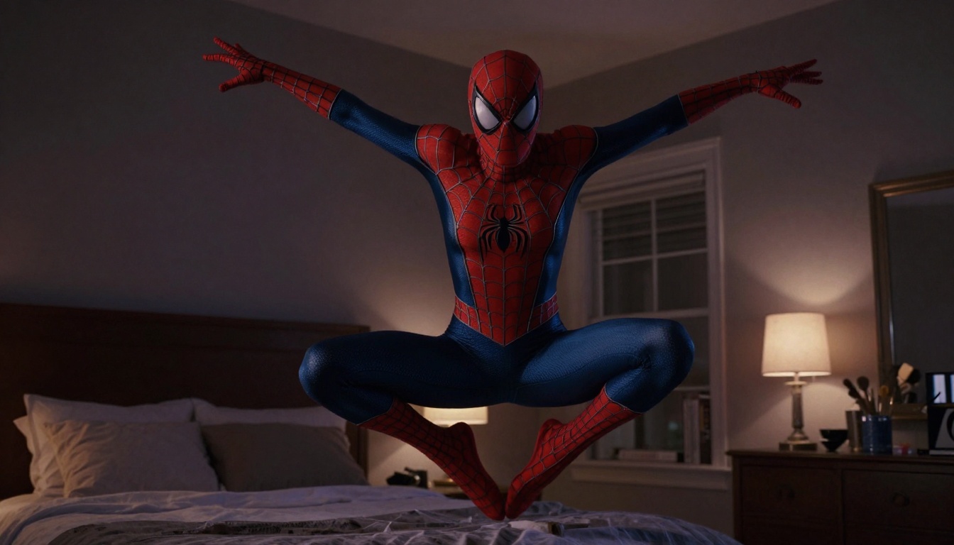 Excited Ghost Spider in Bedroom