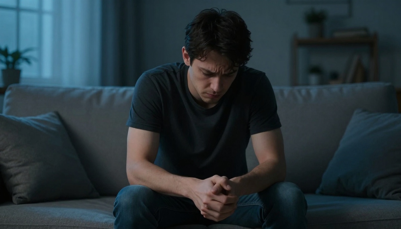 A cinematic portrayal of a man reflecting on regret after an argument, capturing emotional depth and hope.