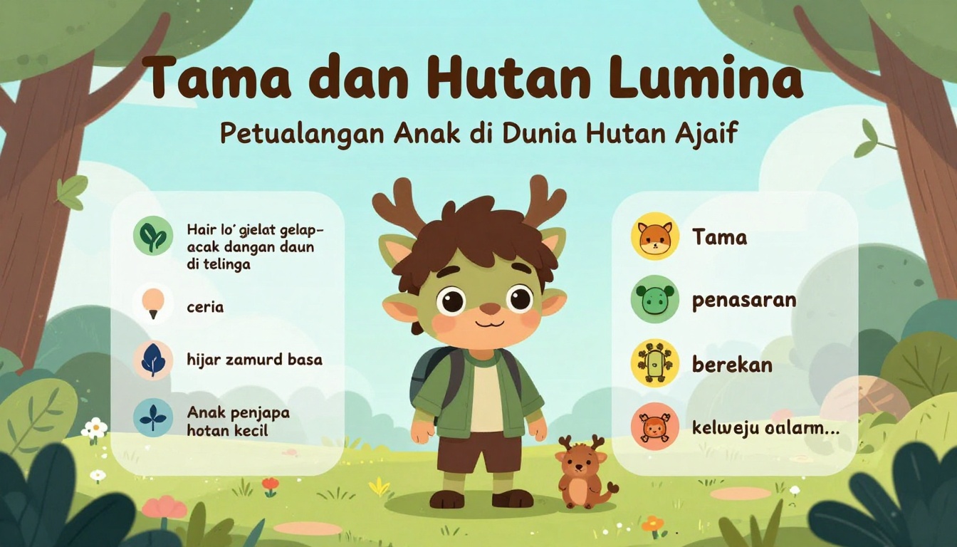 Follow Tama, a brave boy guardian, as he explores a magical forest filled with glowing trees and talking animals.