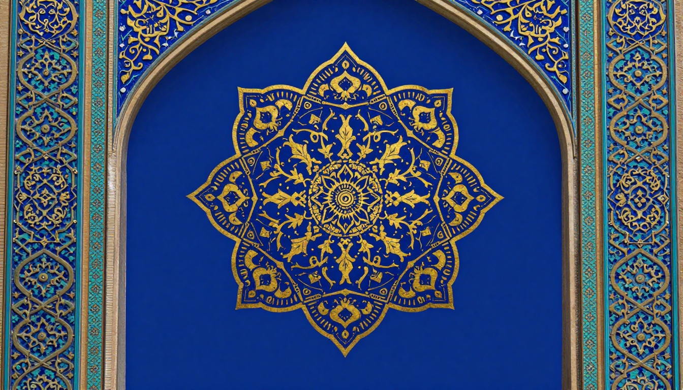 Creates a high-quality logo featuring Persian typography and carpet medallion elements in royal blue and gold.