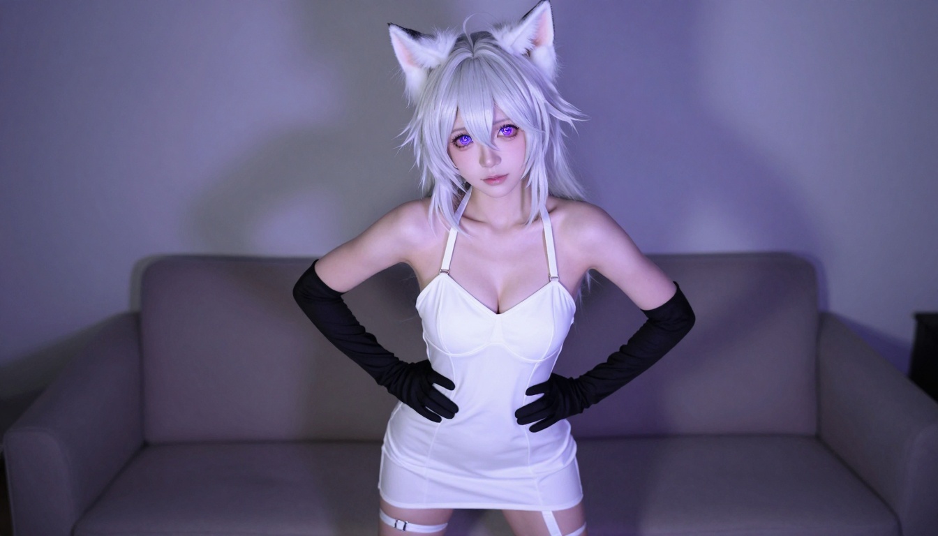 A dynamic portrayal of Kiana Kaslana with striking features in a vibrant urban night scene.