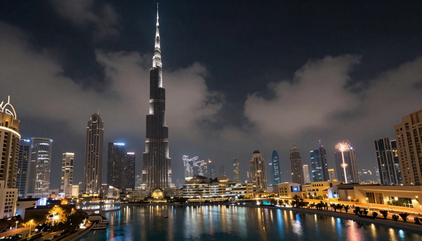 Slow zoom toward Burj Khalifa during “2026” reveal.