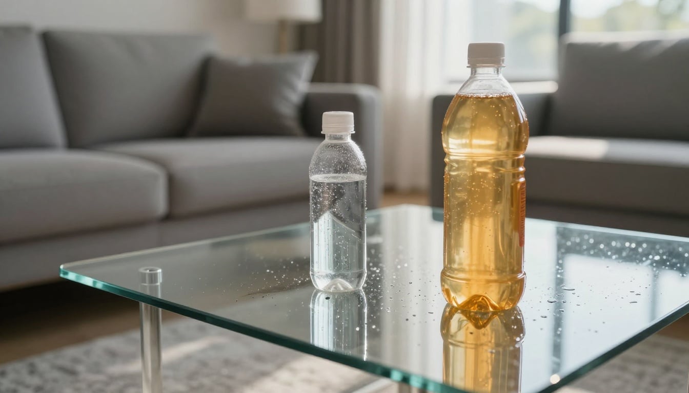 Creates a photorealistic commercial featuring a hand cleaning a glass surface and placing a product bottle.