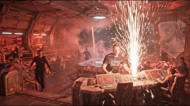 - Camera pushes in quickly toward Brian. Red emergency lights flash rapidly. Sparks erupt violently from the console. Brian frantically types on the keyboard and yells, 'I hit the wrong button! The core is overloading!' Loud alarm sirens blare over intense sci-fi action music.